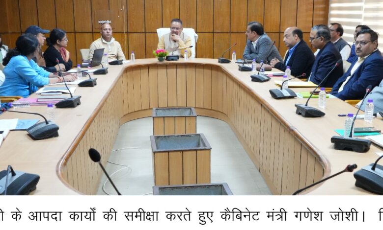 प्रदेश के कैबिनेट मंत्री गणेश जोशी ने विधानसभा स्थित सभागार कक्ष में जल संस्थान, पेयजल निगम, लोक निर्माण विभाग व सिंचाई आदि विभागों के अधिकारियों के साथ अपने विधानसभा क्षेत्र मसूरी के अन्तर्गत आपदा से क्षतिग्रस्त पेयजल योजनाओं , पेयजल लाईनों, सड़क मार्गाें, पैदल मार्गोें, पुलिया आदि के निर्माण व सुदृढ़ीकरण कार्याें के सम्बन्ध में समीक्षा बैठक की।