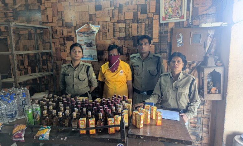 हल्द्वानी के बरेली रोड स्थिति ढाबे से 109 पव्वा देसी और विदेशी शराब और बियर बरामद।