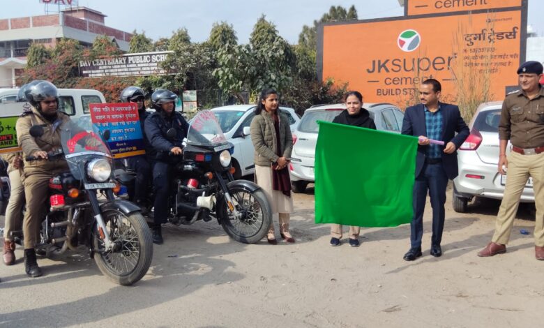 सड़क सुरक्षा माह के अंतर्गत आमजन को यातायात नियमों के प्रति जागरूक करने तथा सड़क दुर्घटनाओं में कमी लाने के उद्देश्य से आज जगजीतपुर चौकी से भगत सिंह चौक तक एक भव्य सड़क सुरक्षा जागरूकता रैली का आयोजन किया गया। रैली का शुभारंभ पुलिस अधीक्षक हरिद्वार श्री जितेंद्र मेहरा द्वारा हरी झंडी दिखाकर किया गया।
