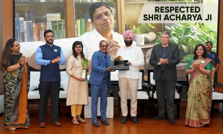 आचार्य श्री ने सम्मान को आयुर्वेद की हजारों साल पुरानी महान परंपरा को समर्पित किया,, आयुर्वेद और सतत विकास के बीच गहरे संबंध पर विचार साझा किए गए।