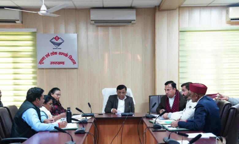 बैठक में सूचना विभाग के संयुक्त निदेशक के.एस.चौहान, नितिन उपाध्याय, वरिष्ठ वित्त अधिकारी श्रीमती शशि सिंह एवं समितियों के सदस्यगण लक्ष्मण सिंह नेगी, गिरीश तिवारी, अमित शर्मा, श्रीमती शशि शर्मा उपस्थित रहे।