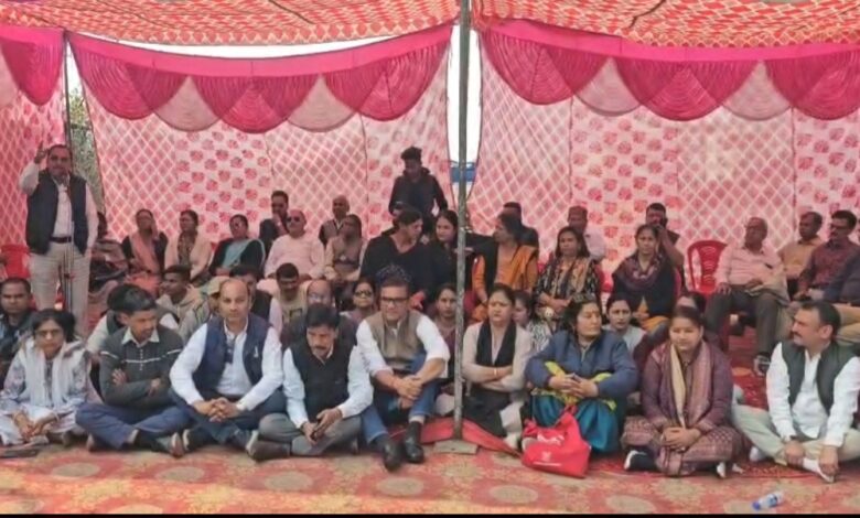 हल्द्वानी में विकास कार्यों के बीच बढ़ते हादसों पर कांग्रेस का धरना।