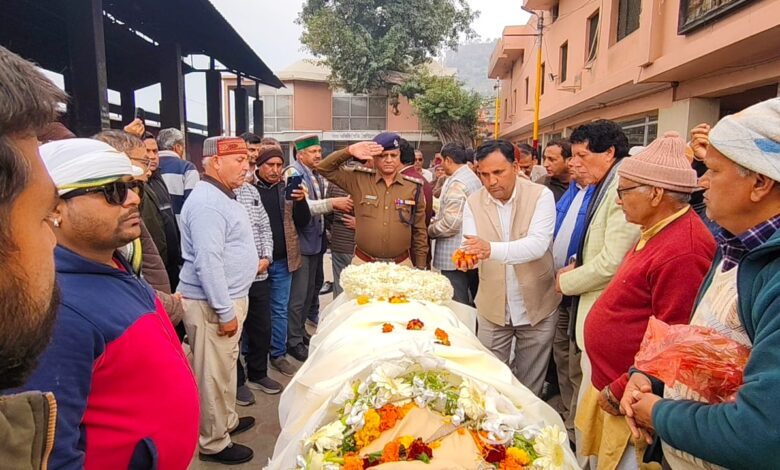 पूर्व विधायक घनसाली बलवीर सिंह नेगी खड़खड़ी शमशान घाट पर मुख्यमंत्री पुष्कर सिंह धामी की ओर से उप जिलाधिकारी जितेंद्र कुमार एवं सीओ शिशुपाल सिंह नेगी ने उनके प्रार्थिव शरीर पर पुष्पचक्र अर्पित कर उन्हें नमन करते हुए अंतिम विधाई दी गई