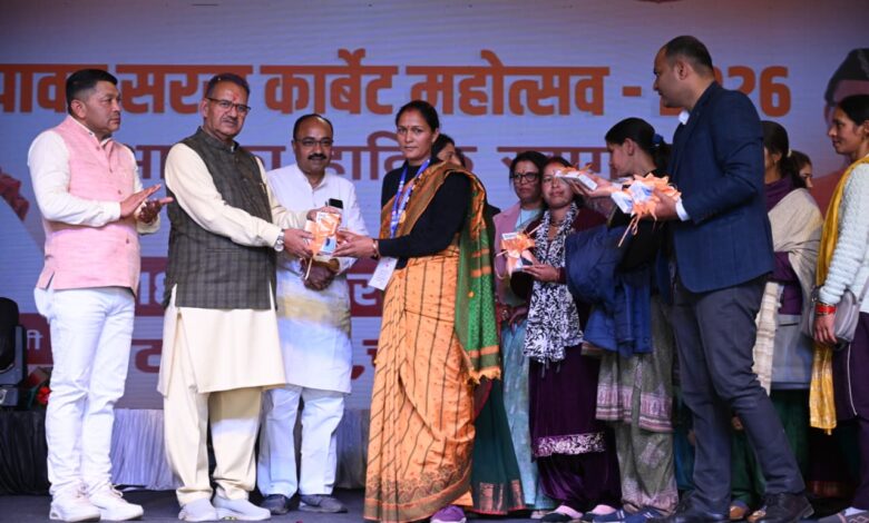 प्रदेश के ग्राम्य विकास मंत्री गणेश जोशी ने आज जनपद चम्पावत के टनकपुर में आयोजित ‘चम्पावत सरस कॉर्बेट महोत्सव–2026’ में मुख्य अतिथि के रूप में सहभागिता की। कार्यक्रम के दौरान उन्होंने विभिन्न विभागों, स्वयं सहायता समूहों एवं स्थानीय उद्यमियों द्वारा लगाए गए स्टॉलों का निरीक्षण किया और उत्पादों की गुणवत्ता की सराहना करते हुए प्रतिभागियों का उत्साहवर्धन किया। इस दौरान मंत्री गणेश जोशी ने पशु सखियों की मोबाइल फोन और विभिन्न स्वयं सहायता समूह की महिलाओं को चैक तथा कृषकों को फार्म मिशनरी बैंक भी वितरित किया। कार्यक्रम के दौरान मंत्री गणेश जोशी ने बाल विकास विभाग द्वारा 25 बच्चों का सामूहिक जन्म दिवस भी कैक काटकर मनाया।