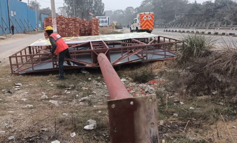 अधिशासी अभियंता एनएचएआई अतुल शर्मा ने अवगत कराया है कि जिलाधिकारी के निर्देशों के अनुपालन में राष्ट्रीय राजमार्ग संख्या 334 के किनारों से एवं रानीपुर झाल से बहादराबाद बाईपास क्षेत्रांतर्गत अवैध रूप एवं बिना अनुमति के लगाए गए बड़े बड़े यूनीपोल एवं होर्डिंग को राष्ट्रीय राजमार्ग प्राधिकरण द्वारा अधिकृत एजेंसी की टीम द्वारा हटाया जा रहा है। उन्होंने यह भी अवगत कराया है कि राष्ट्रीय राजमार्ग के किनारे बनाए गए खोखे, झुगी झोपड़ी को भी हटाया जा रहा है।