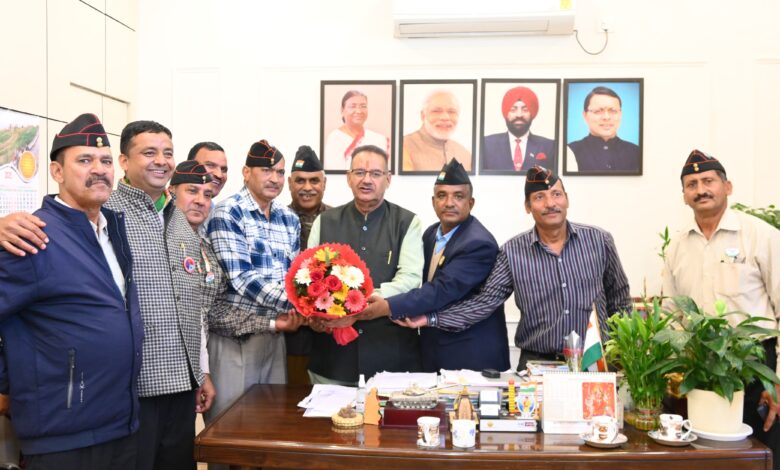 कोटद्वार के पूर्व सैनिक संघर्ष समिति के पदाधिकारियों ने सैनिक कल्याण मंत्री गणेश जोशी से की मुलाकात।