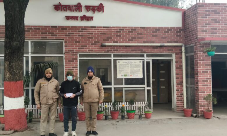 दिनांक 30.12.2025 को कोतवाली रूड़की पुलिस टीम मोहनपुरा डबल फाटक क्षेत्र में गश्त पर थी। गश्त के दौरान एक व्यक्ति पुलिस को देखकर अचानक भागने का प्रयास करने लगा, जिसके पास एक सफेद पन्नी दिखाई दी। पुलिस टीम द्वारा तत्परता दिखाते हुए उक्त व्यक्ति को मौके पर ही पकड़ लिया गया।