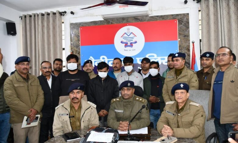 शहर के सबसे चर्चित कुसमखेड़ा इलाके में राधिका ज्वेलर्स चोरीकांड का पुलिस ने खुलासा कर दिया है। एसएसपी मंजूनाथ टीसी ने प्रेस कांफ्रेंस कर पूरे मामले की जानकारी दी। पुलिस ने इस सनसनीखेज चोरी में शामिल एक बड़े अंतर्राष्ट्रीय गिरोह के चार शातिर चोरों को गिरफ्तार किया है, जबकि अन्य आरोपियों की तलाश अभी जारी है। पुलिस जांच में सामने आया है कि चोरों ने ज्वेलर्स के बगल की दुकान में किरायेदार बनकर रहना शुरू किया और सुनियोजित तरीके से चोरी की वारदात को अंजाम दिया। गिरफ्तार आरोपियों में नेपाल, महाराष्ट्र और झारखंड के रहने वाले गिरोह के सदस्य शामिल हैं। गिरोह का मुख्य सरगना झारखंड का मकसूद और महाराष्ट्र का तनवीर बताया जा रहा है। एसएसपी ने बताया कि पुलिस ने आरोपियों के कब्जे से चोरी किए गए 54 ग्राम सोना और 7.25 किलोग्राम चांदी के जेवरात बरामद किए हैं, जिनकी अनुमानित कीमत करीब 22 लाख रुपये है। इसके अलावा चोरी में इस्तेमाल की गई बोलेरो गाड़ी को भी पुलिस ने बरामद की है।