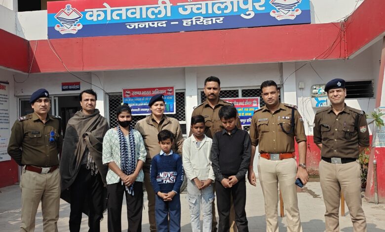 सूचना मिलते ही कोतवाली ज्वालापुर पुलिस ने इलेक्ट्रॉनिक मीडिया सहित अन्य के माध्यम से प्रचार प्रसार कर तीनों नाबालिक बच्चों को मालवीय धाम के आसपास से सकुशल बरामद किया गया।