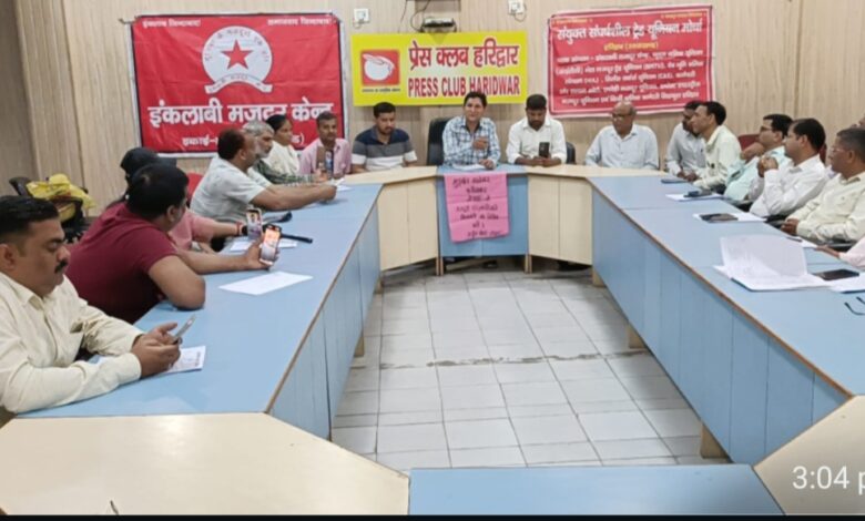 हरिद्वार, इंकलाबी मजदूर केन्द्र एवं संयुक्त संघर्षशील ट्रेड यूनियन मोर्चा के पदाधिकारियों ने गुडगाँव व मानेसर और नोएडा, फरीदाबाद आदि इलाकों में मजदूर आंदोलन के दौरान मजदूर नेताओं की फर्जी मुकदमें में की गयी गिरफ्तारी के विरोध में प्रेस वार्ता की गयी।