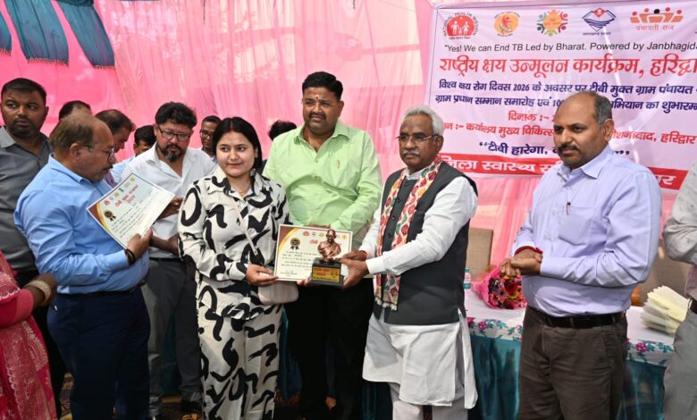 विश्व क्षय रोग दिवस 2026 के अवसर पर राष्ट्रीय क्षय उन्मूलन कार्यक्रम के अंतर्गत कार्यालय मुख्य चिकित्साधिकारी, रोशनाबाद, हरिद्वार में “टीबी मुक्त ग्राम पंचायत – ग्राम प्रधान सम्मान समारोह एवं 100 दिवसीय विशेष अभियान” का शुभारंभ मुख्य अतिथि कैबिनेट मंत्री मदन कौशिक द्वारा किया गया।