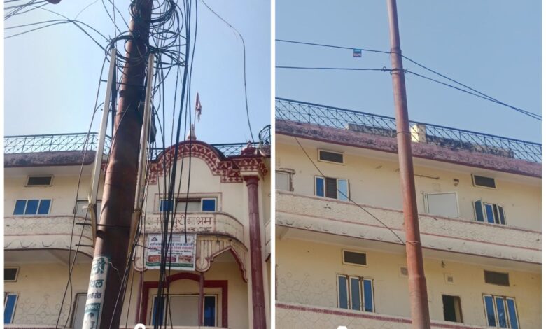नगर निगम हरिद्वार द्वारा शहर में संचालित विद्युत सुरक्षा एवं स्वच्छता अभियान के तहत भीमगोड़ा से सुखी नदी पुल तक स्ट्रीट लाइट पोलों पर लगे अवैध एवं अनियंत्रित तारों को हटाने की कार्रवाई की गई।
