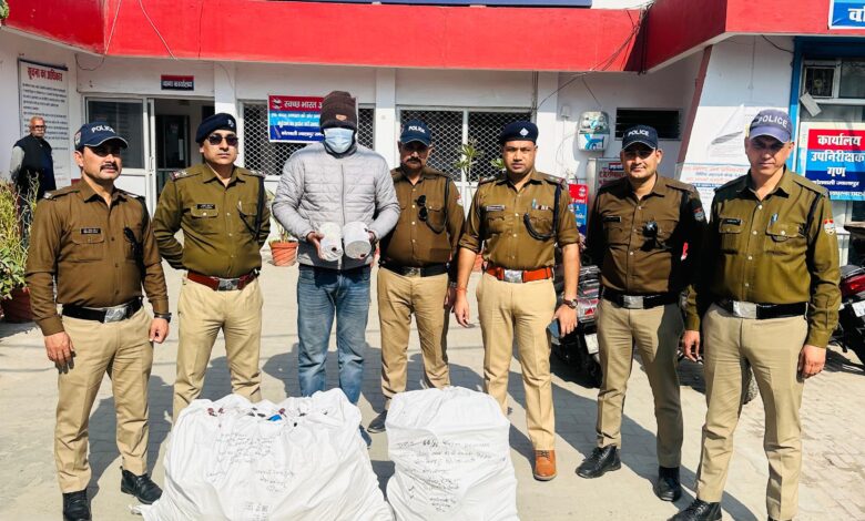 वरिष्ठ उप निरीक्षक ज्वालापुर खेमेन्द्र गंगवार के नेतृत्व में टीम द्वारा संपूर्ण बाजार ज्वालापुर क्षेत्रांतर्गत पतंग बेचने वाली दुकानों पर चेकिंग की कार्रवाई की गई तो मुखवीर ख़ास की सूचना पर मोहल्ला लोधा मंडी मेहतान में बंद कमरे में भारी मात्रा में अवैध चाइनीस मांझा रखा होने की सूचना पर अपर उप निरीक्षक गंम्भीर तोमर मय चेतक 18 कर्म0गण हे0कांस्टेबल गोवर्धन प्रसाद कांस्टेबल गणेश तोमर द्वारा मौके पर पहुंचकर कमरे का दरवाजा खोलकर चेक किया गया तो एक व्यक्ति मौके से भागने का प्रयास करने लगा जिसको पुलिस कर्म गणों द्वारा आवश्यक बल प्रयोग कर मौके पर ही पकड़ लिया गया भागने का कारण व नाम पता पूछते हुए तलाशी दी गई तो अपना नाम दानिश पुत्र तय्यब निवासी मोहल्ला लोधा मण्डी मेहतान कोतवाली ज्वालापुर जनपद हरिद्वार बताया तलाशी में कमरे के अंदर अवैध चाइनीस मांझे के 02प्लास्टिक के कट्टे रखे है दोनों कट्टों को खोलकर चेक किया तो कट्टो के अंदर भारी मात्रा में चाइनीस मांझा मिला जिसे मौके पर ही सील कर नमूना मोहर लिया गया अभियुक्त दानिश उपरोक्त को जुर्म धारा से अवगत करा कर मौके पर ही गिरफ्तार किया गया।