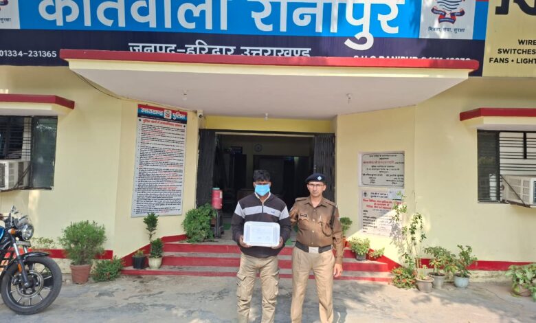 वरिष्ठ पुलिस अधीक्षक महोदय के आदेशानुसार आपराधिक घटनाओ की रोकथाम हेतु चलाये जा रहे अभियान के अनुपालन में कोतवाली रानीपुर पुलिस द्वारा कल दिनांक 31.10.2025 की रात्रि को संदिग्ध व्यक्तियो की चैकिंग के दौरान रानीपुर क्षेत्रान्तर्गत *कृपालनगर जाने वाले कच्चे रास्ते से अभियुक्त *संदीप शर्मा पुत्र मदन शर्मा स्थाई निवासी ग्राम तिरछा थाना व जिला सहरसा बिहार हाल निवासी रामेश्वर पार्षद के मकान पर किरायेदार गली नम्बर-02 टिबड़ी कोतवाली रानीपुर जनपद हरिद्वार उम्र-22 वर्ष* को गिरफ्तार कर उसके कब्जे से *01 अदद तमंचा 315 बोर व 01 कारतूस* की बरामदगी की गयी ।”