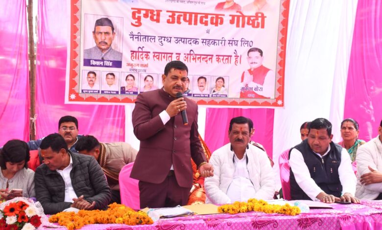 नैनीताल दुग्ध उत्पादक सहकारी संघ लिमिटेड द्वारा दुग्ध उत्पादकों को सजग, प्रतिबद्ध एवं आत्मनिर्भर बनाने के उद्देश्य से भव्य गोष्ठी कार्यक्रम का आयोजन किया गया। कार्यक्रम की अध्यक्षता दुग्ध संघ अध्यक्ष मुकेश बोरा ने की। गोष्ठी में क्षेत्र की 7 दुग्ध समितियों से जुड़े 300 से अधिक दुग्ध उत्पादकों ने उत्साहपूर्वक सहभागिता की।