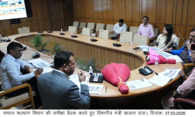 प्रदेश के समाज कल्याण मंत्री खजान दास ने आज विधानसभा स्थित सभागार कक्ष में विभागीय अधिकारियों के साथ समीक्षा बैठक की।