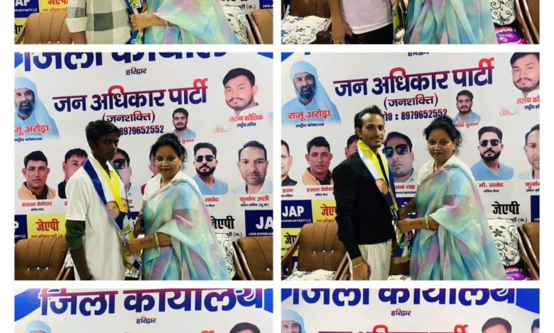 देर रात जन अधिकार पार्टी (ज.) के जिला हरिद्वार कार्यालय में एक बैठक का आयोजन किया गया। जिसमे हरिद्वार विधानसभा के मोहम्मद जेन मीर के नेतृत्व में युवाओं ने बढ़ चढ़ कर हिस्सा लिया और जन अधिकार पार्टी (जनशक्ति) की सदस्यता ग्रहण कर पार्टी को तन मन धन से मज़बूत बनाने की शपथ ली।